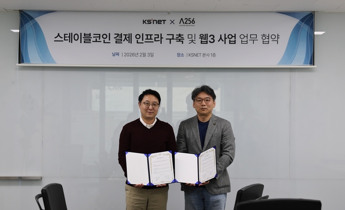 람다256은 지난 2월 3일 서울 케이에스넷 본사에서 케이에스넷과 ‘스테이블코인 결제 인프라 구축 및 웹3 사업 협력’을 위한 업무협약을 체결하고, 스테이블코인 결제 관련 PoC(기술 검증) 사업에 본격 착수한다고 밝혔다.