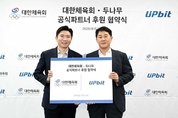 디지털자산 거래소 업비트를 운영하는 두나무(대표 오경석)는 지난 15일 대한체육회(회장 유승민)와 공식 파트너 후원 협약식을 개최했다고 16일 밝혔다. 협약식은 지난 15일 대한체육회에서 열렸으며, 오경석 두나무 대표와 유승민 대한체육회장을 비롯한 양측 관계자들이 참석했다. 업비트와 대한체육회는 이번 협약을 계기로 국가대표 선수단 지원을 넘어 대한민국 스포츠의 지속 가능한 발전을 위한 협력을 본격화한다. 양측은 2026년 2월 개최 예정인 밀라노 코르티나 동계올림픽을 맞아 팀코리아 선수단 응원 영상을 제작할 계획이다. 아울러 꿈나무 선수 육성 지원과 스포츠 저변 확대 등 다양한 협력 방안도 함께 모색한다. 업비트는 대한체육회의 공식 파트너로서 ▲대한체육회 휘장 및 공식 후원사 명칭 사용 ▲팀코리아 엠블럼 ▲국가대표 선수단 집합적 초상권 등 다양한 지식재산권을 활용해 마케팅을 진행할 예정이다. 오경석 두나무 대표는 “도전하며 세계로 나아가고자 하는 업비트의 여정은 국가대표 선수들의 끊임없는 도전과 맞닿아 있다”며 “앞으로도 선수단의 도전에 함께하며 국민에게 긍정적인 에너지와 신뢰를 전하겠다”고 말했다. 유승민 대한체육회장은 “업비트는 이미 팀코리아 응원 영상