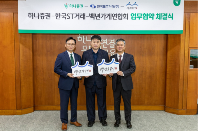 하나증권(대표 강성묵)은 한국ST거래, 백년가게연합회와 함께 '백년가게 투자계약증권 발행을 위한 업무협약(MOU)'를 체결했다고 4일 밝혔다.