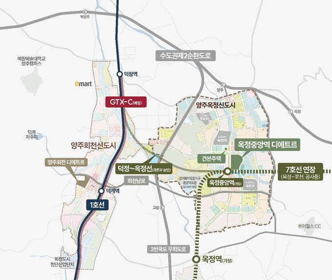 이 같은 흐름 속에서 옥정신도시 내 7호선 초역세권 입지를 확보한 신규 단지가 공급을 앞두며 관심이 이어지고 있다. 단지는 옥정중앙역(가칭, ‘30년 예정) 바로 앞으로 위치하며, 올해 4월 분양을 앞두고 있다.